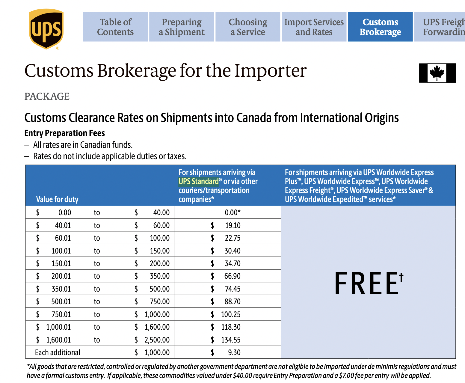 UPS have entry preparation fees depending on the package value. This is only applicable to the UPS Standard option, other options are exempted from those fees